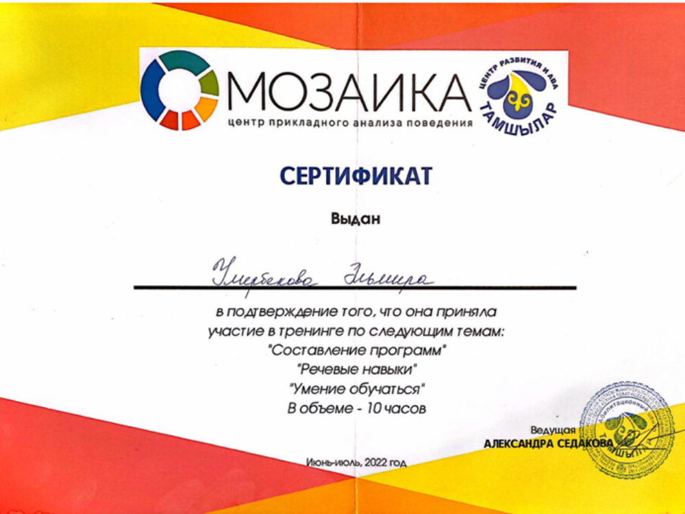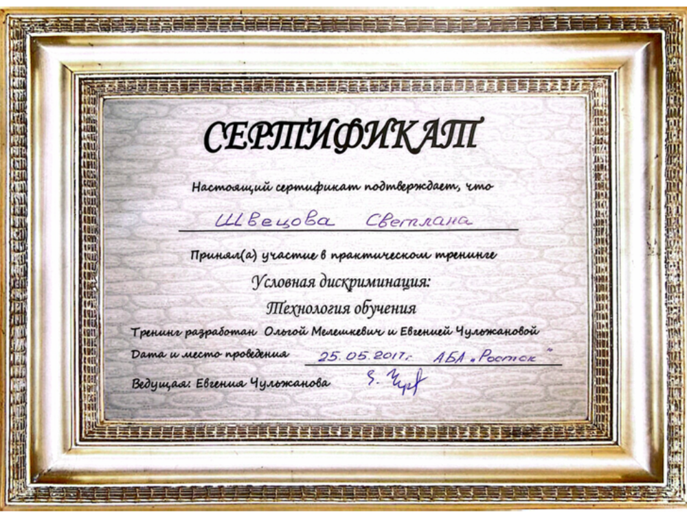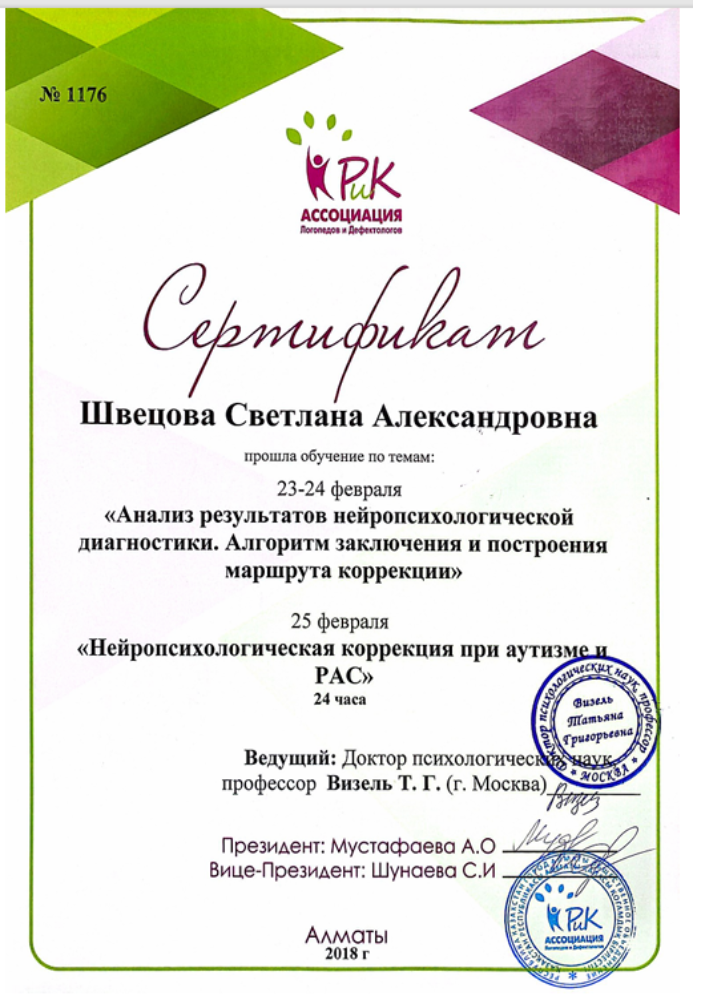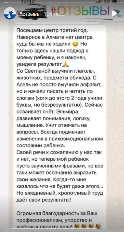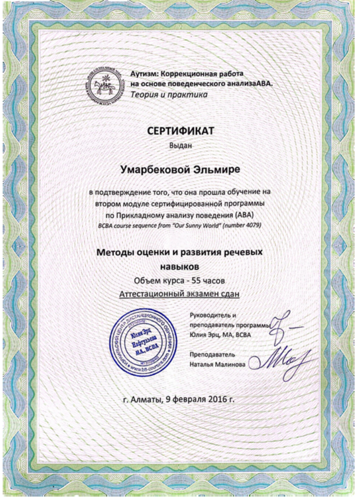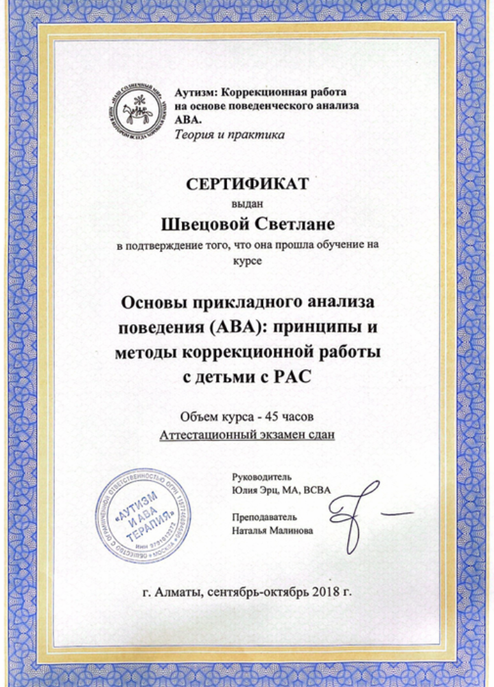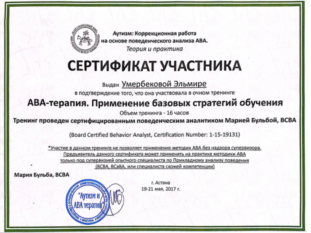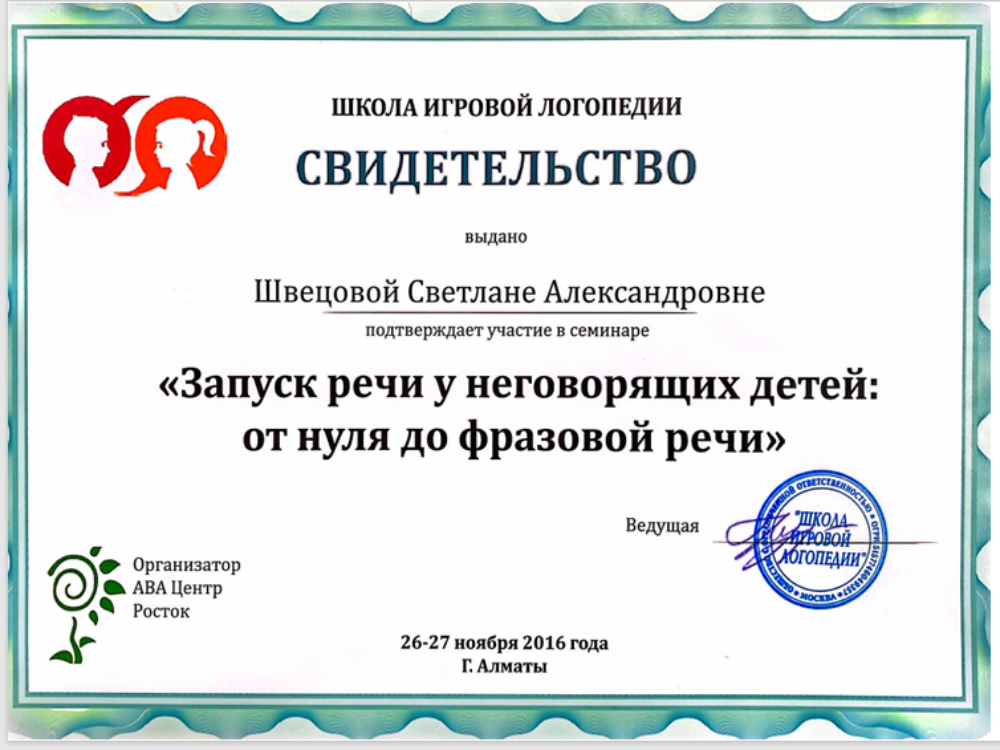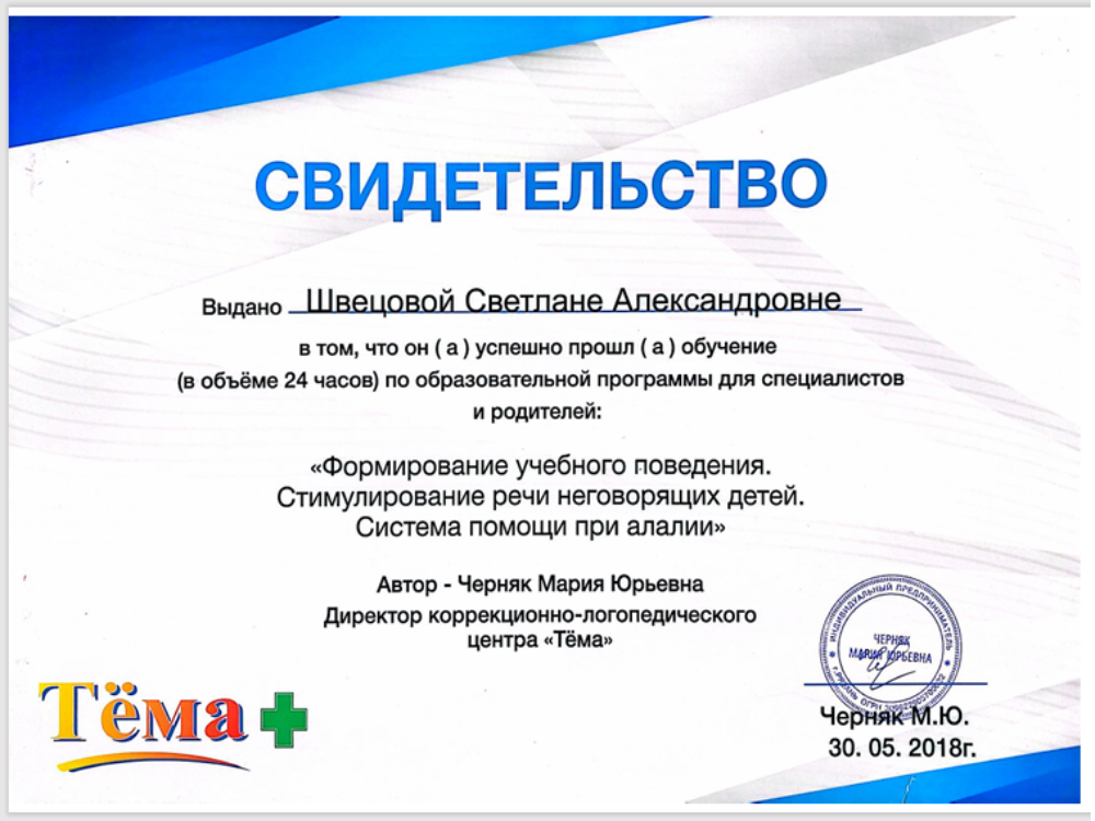 С 2014 года высокоэффективно занимается коррекцией поведения и стимулированием речи неговорящих детей